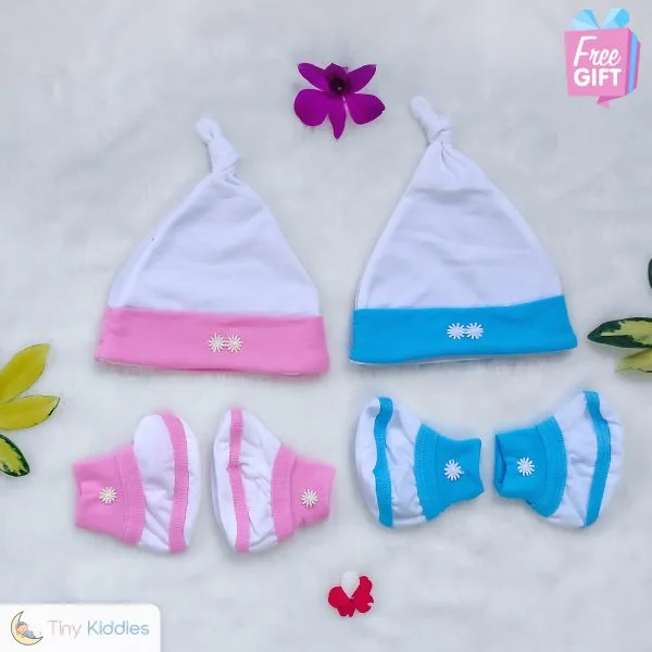 Welcome your little one with the utmost comfort and care using our Newborn Baby Jersey Socks & Cap Set. Crafted from 100% Cotton Single Jersey Fabric, this set ensures that your baby stays cozy and comfortable. Available in soft pink and blue, it is perfect for newborns aged 0-3 months. At Tiny Kiddies, every product is made in Sri Lanka with meticulous attention to detail, prioritizing your baby’s well-being.